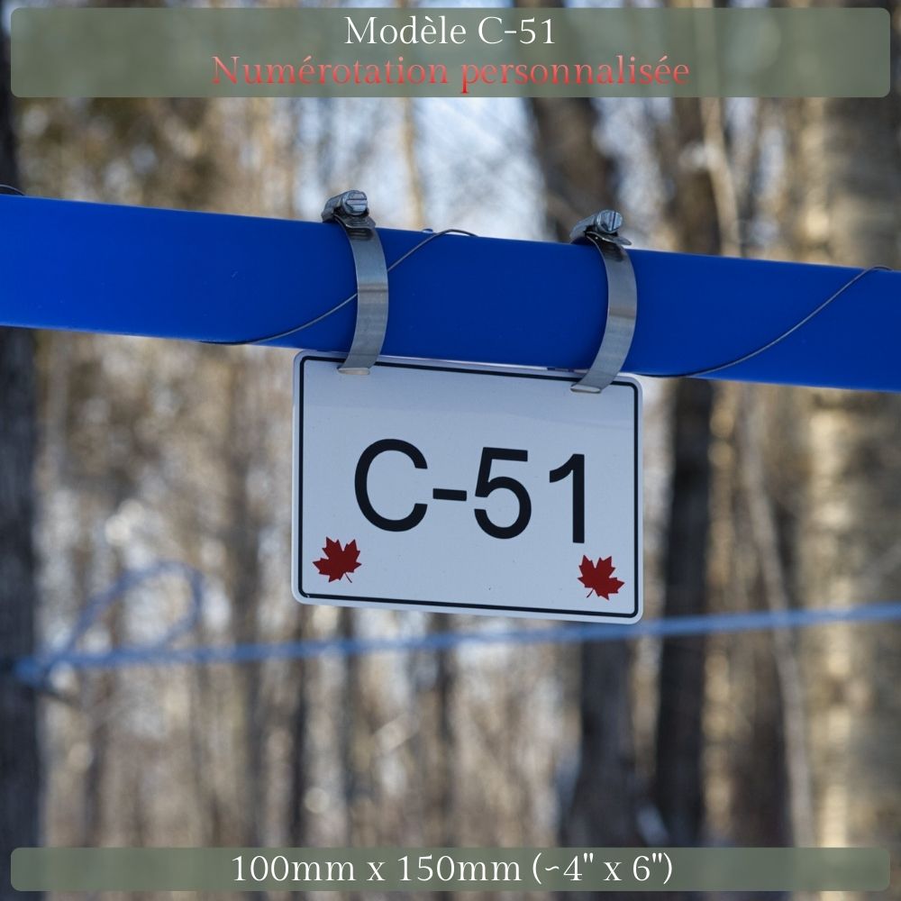 Pancarte tubulure - Modèle C-51 (4"x6") - Numérotation personnalisée