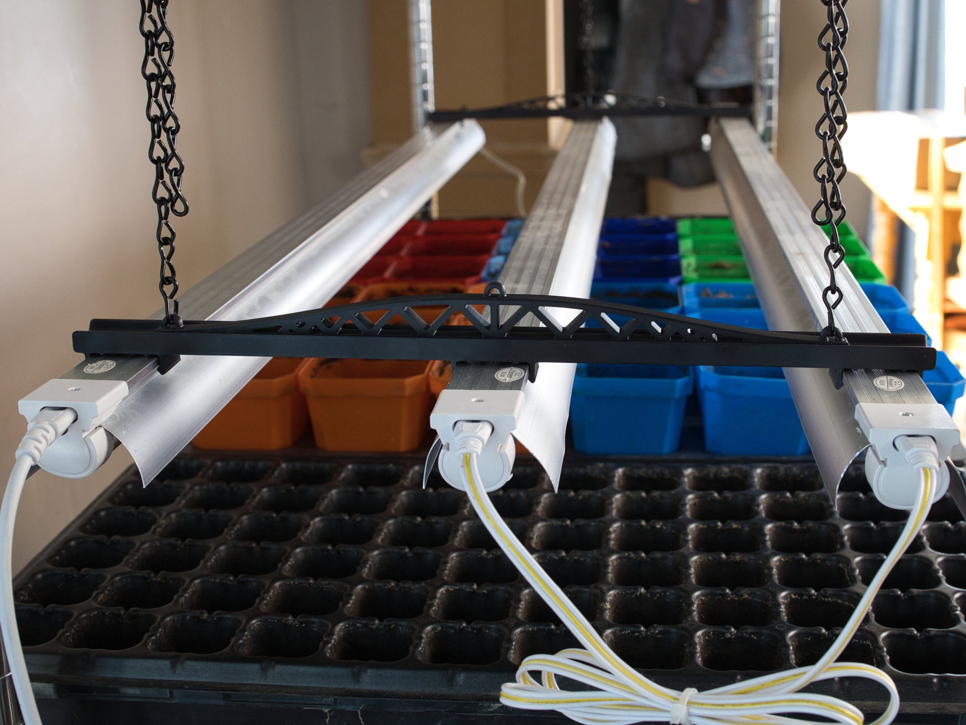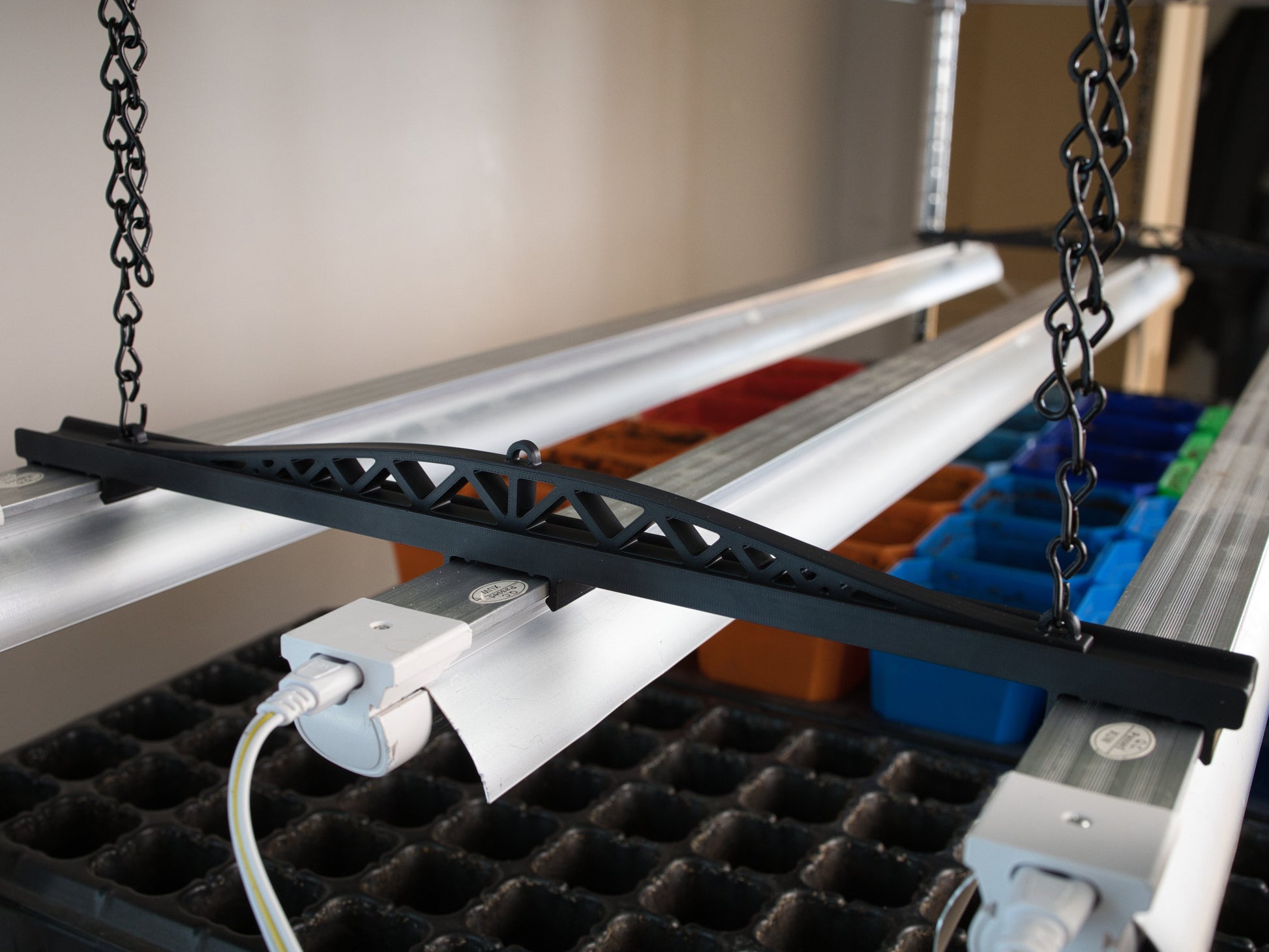 Contrairement aux solutions improvisées, ce support est pensé pour ne pas se décrocher facilement, réduisant les risques de chute des lumières lors des ajustements de hauteur et protégeant ainsi vos semis.