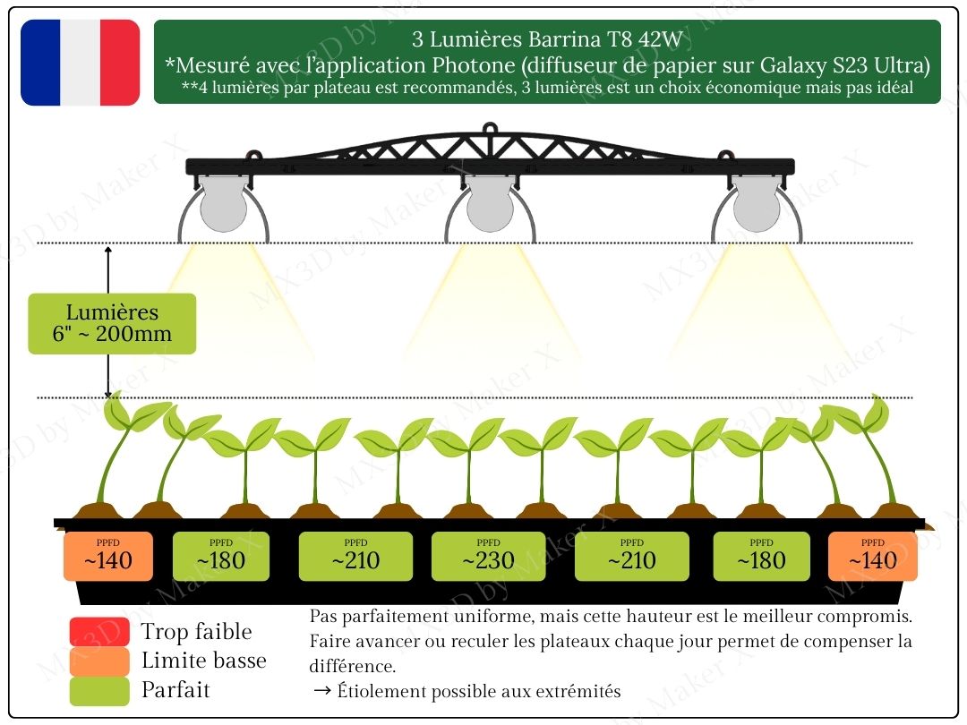 🪴 Support conçu pour suspendre 3 lampes de croissance de type Barrina T8, offrant un positionnement stable, sécuritaire et rapide.